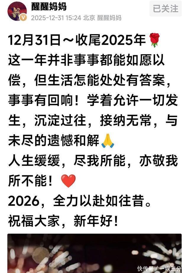 “人生十不如意八九”回首往事,有多少缺憾啊!对于名人章子怡来说,她本是个事业有成,家庭相对幸福的人,回望2025年,她欣慰地说,允许一切发生!人们往往回想那些不如意的不随自己发生的事情,感到焦虑和抑郁,似乎整个世界都对不起自己,然而必须有“允许一切发生”的理念,才能应对这纷繁复杂的世界。2025年对章子怡而言,是事业全面绽放、个人状态焕新的一年。她以一系列扎实的成绩,展现了专业演员的生命力。